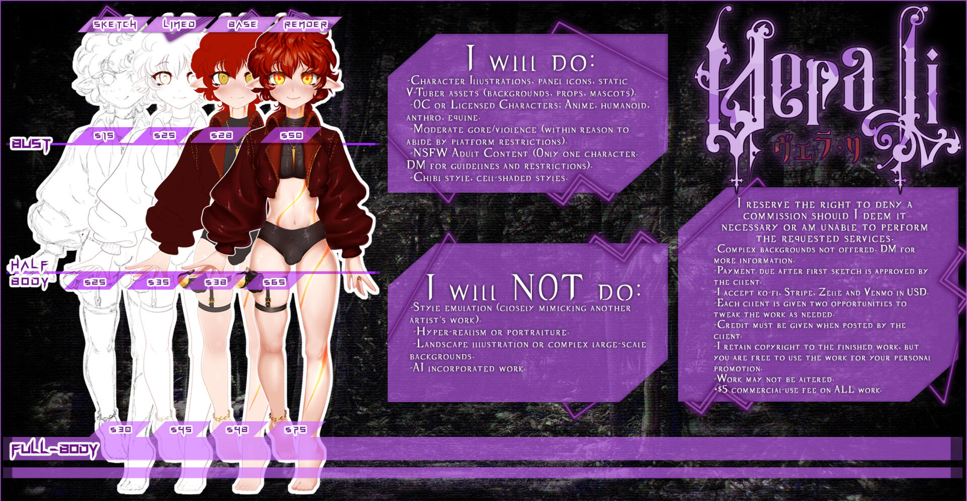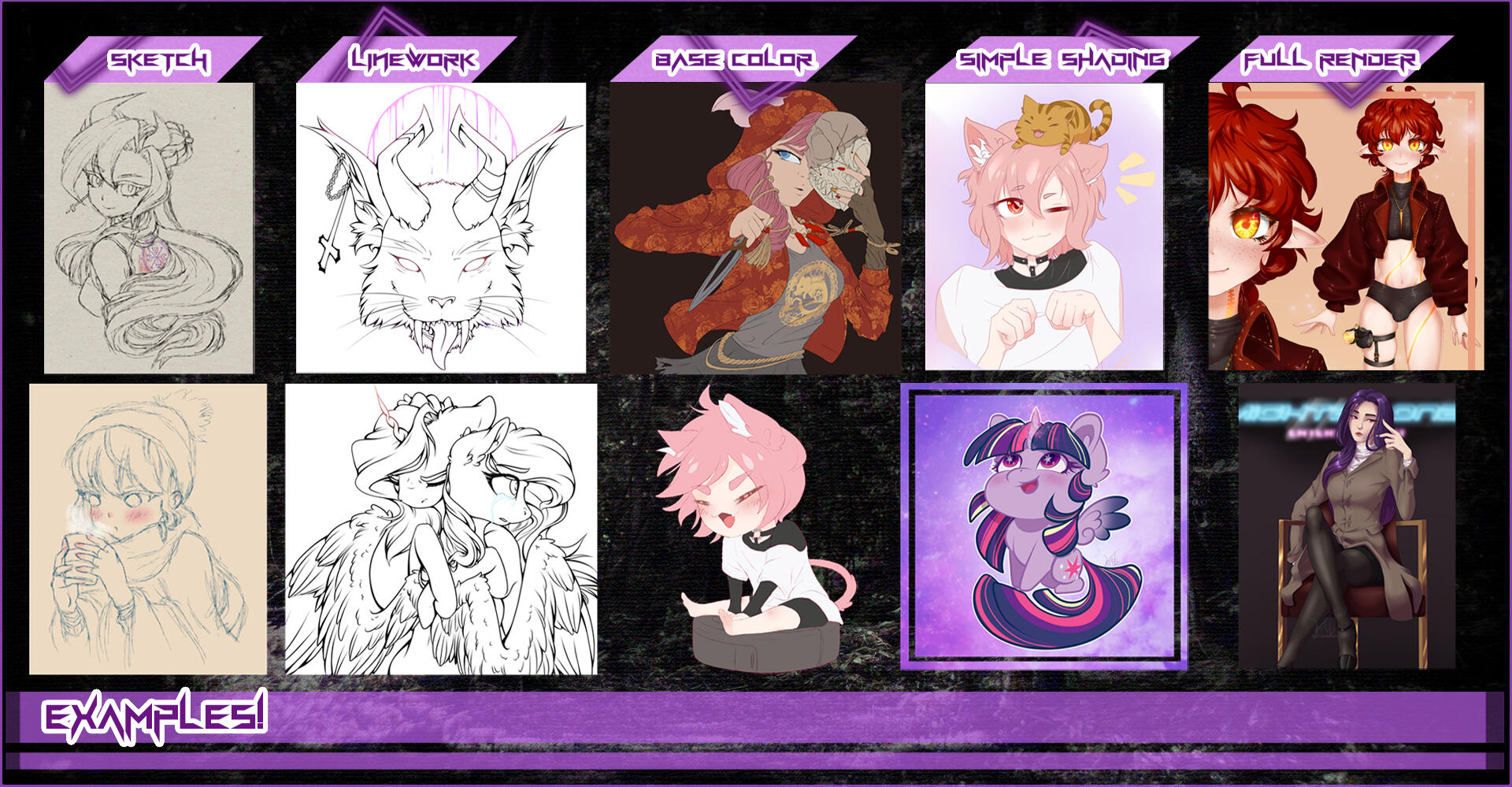 I'm a self-taught artist that began my journey in 2013 when I first stumbled across the concept of fandom. Since then, I've pursued different artstyles and expanding my library of techniques, and have found my passion for character design in the VTubing and Anime communities. While it's been a long road, I'm eager to continue to improve with each project.Below is a backlog of pieces that I believe illustrate my journey in finding both myself, and the way I want to leave my imprint on the creative community online. All work post 2022 can be found in my portfolio.